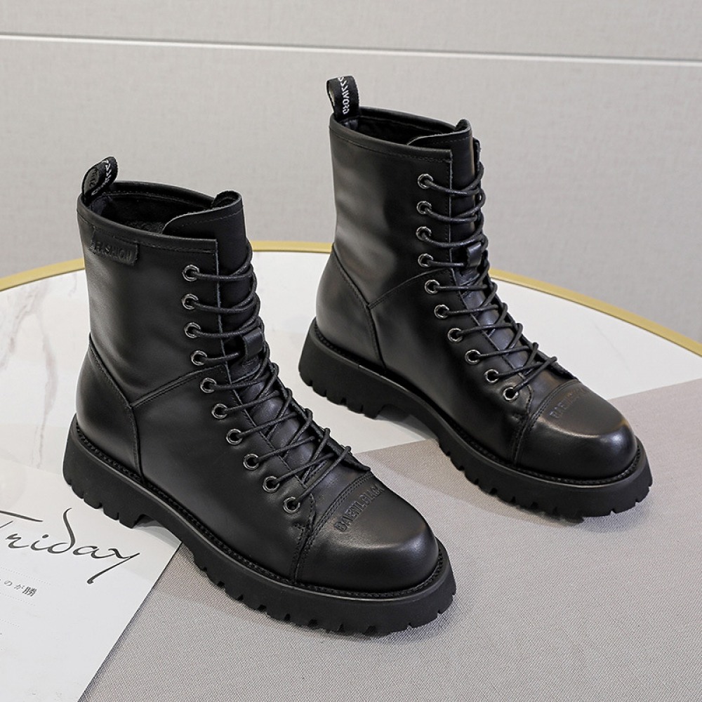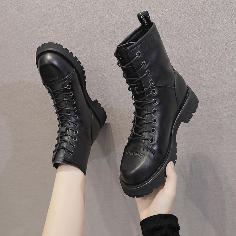 Autumn New Martin Boots Female Round Toe Thick Bottom Tube Black Short Boots Trend