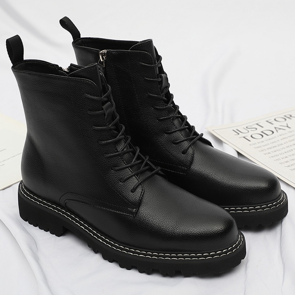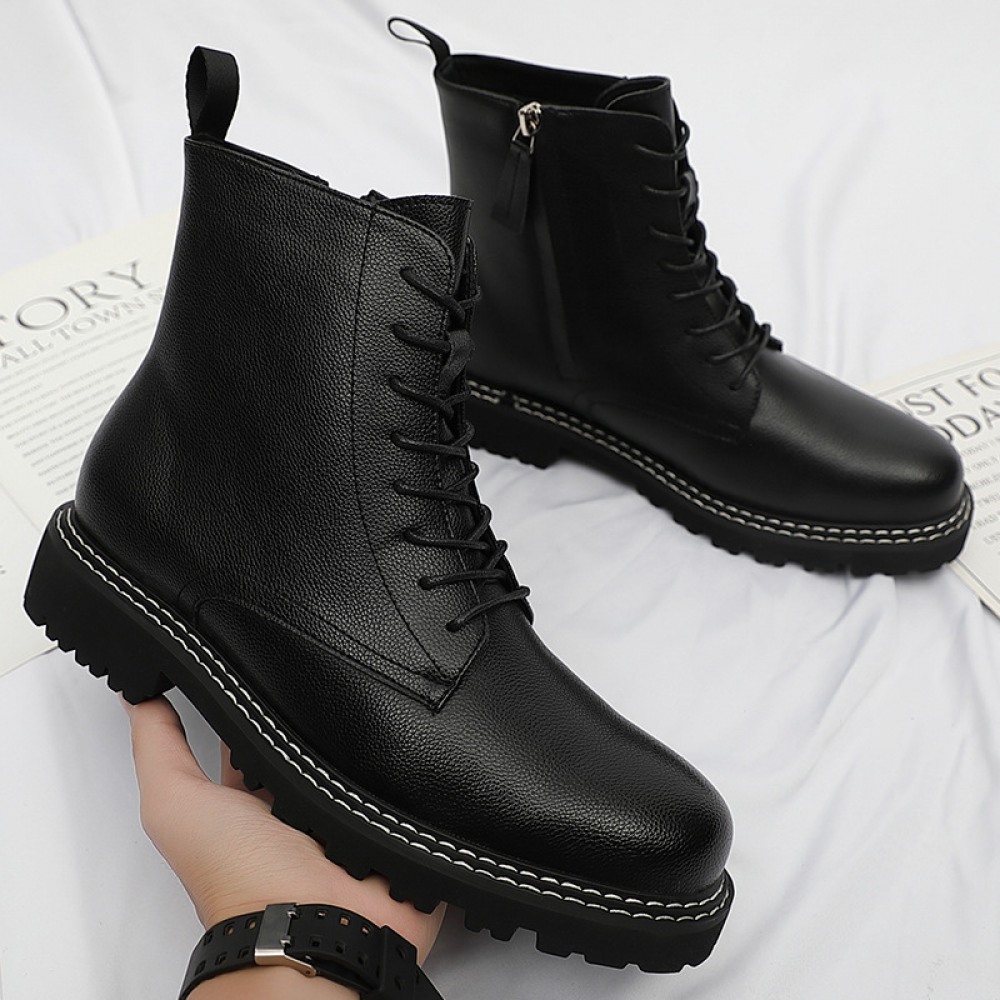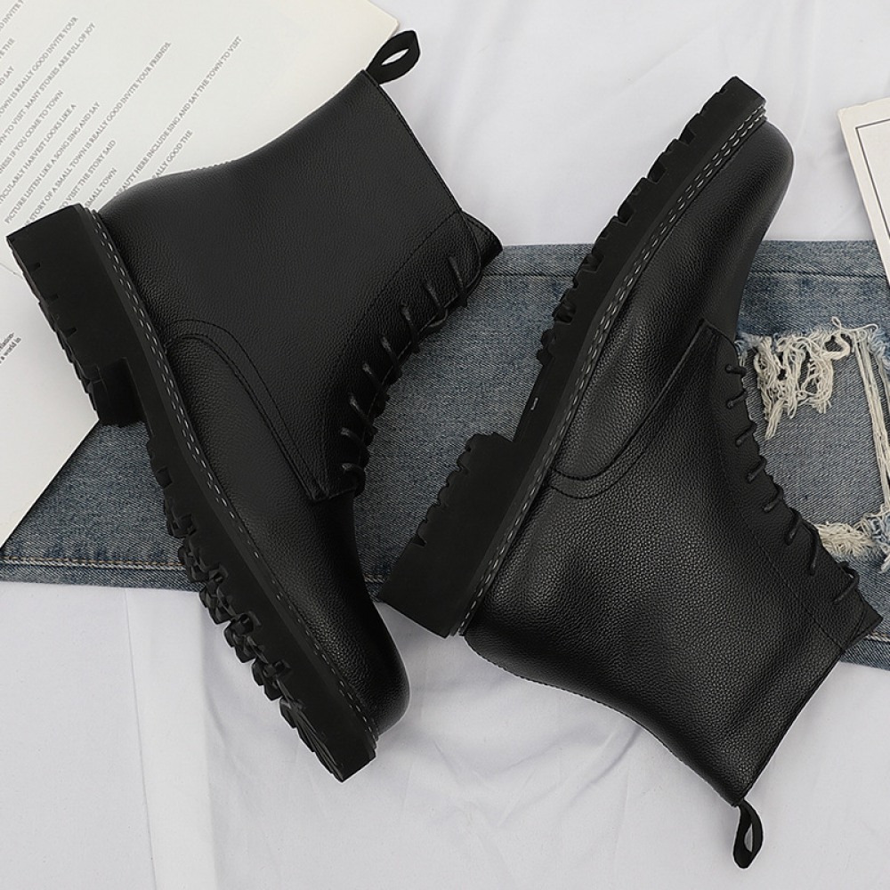 Autumn New Leather Men's Leather Boots Front Lace-Up Low-Heel Martin Boots Mens Shoes
