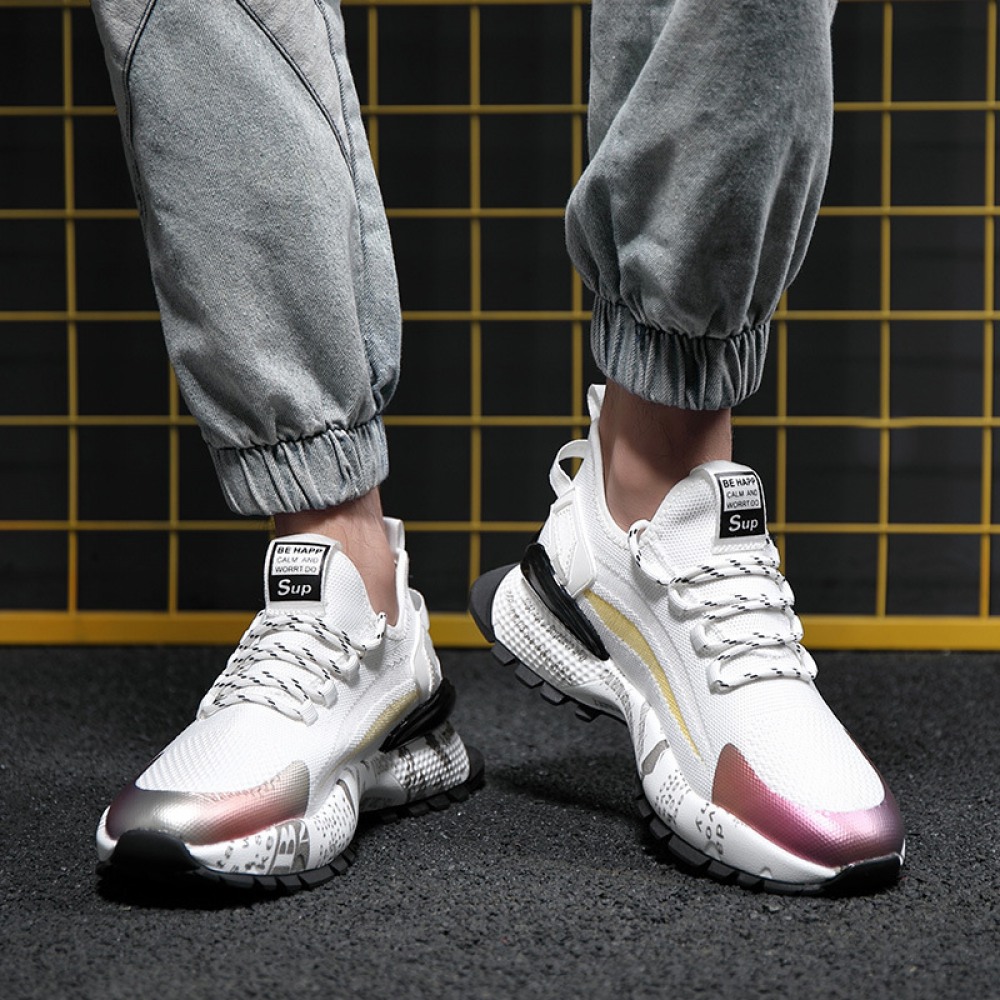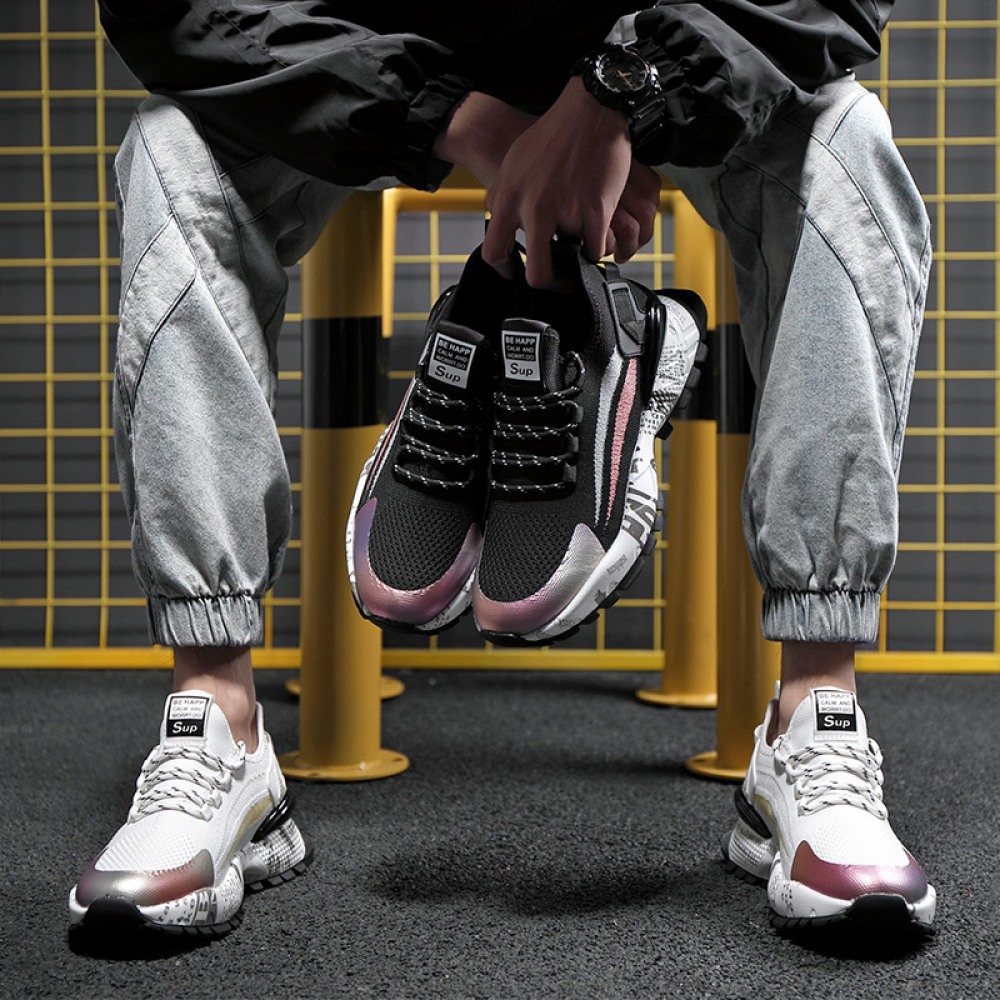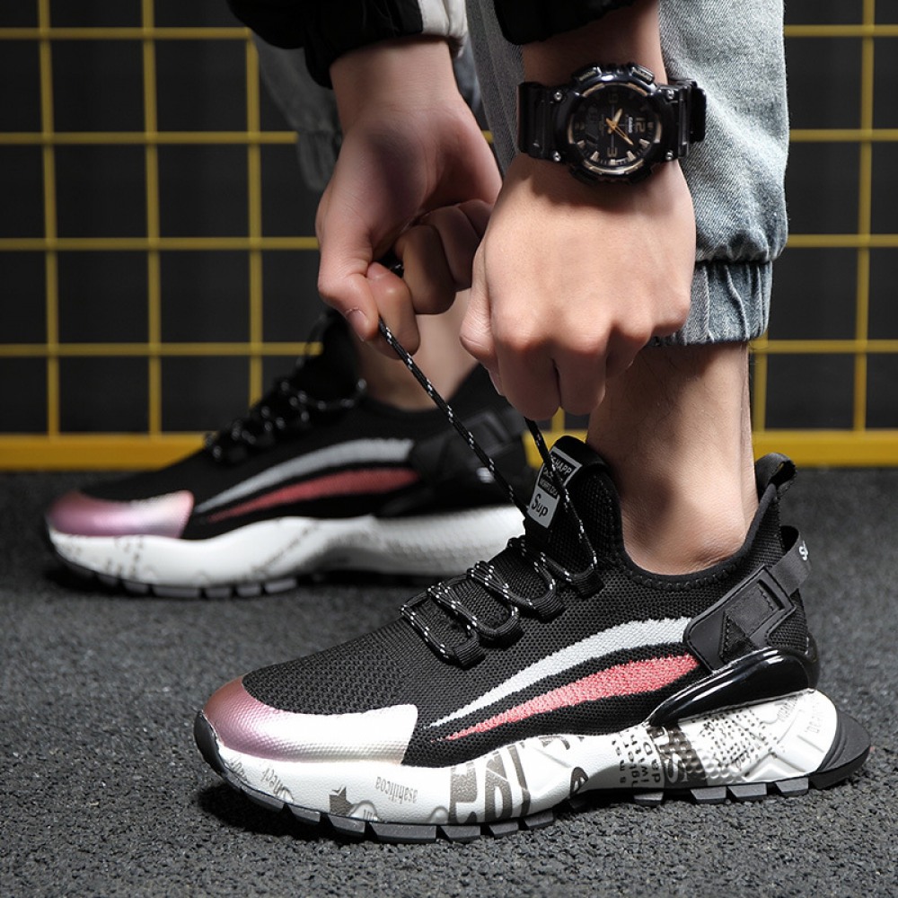 Spring New Men's Shoes Low-Top Sneakers Mens Thick-Soled Fly Woven Casual Trendy Shoes Men